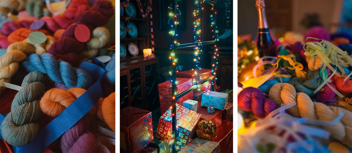 I hope you enjoy the pops of colour in between, too. I wanted to see out the year with a celebration of all Whistlebare’s yarn, and the absolute magic Alice works with the rest of the team on the farm and in the dye kitchen to make it all happen.