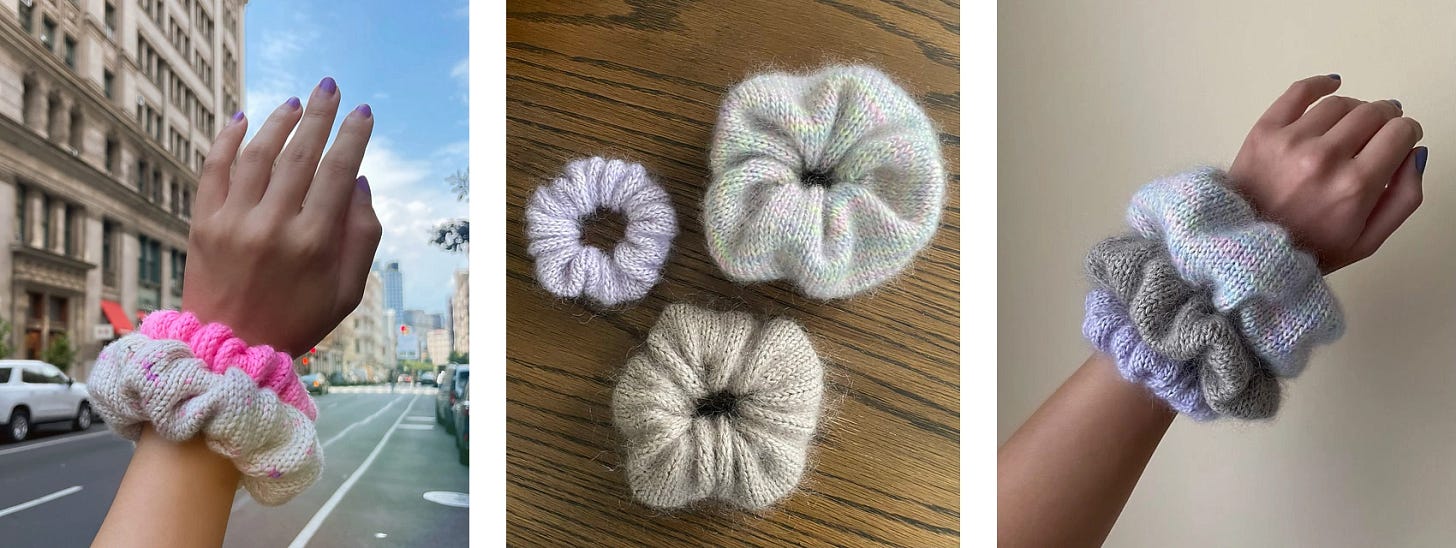 These sweet scrunchies by Tori Yu are the perfect project if you’re looking for a quick knit to get back into the swing of things. There are three sizes to choose from, and each can be knitted in a choice of four different yarn weights. A single mini skein will knit the small scrunchie, or a full skein will knit the full set of three.