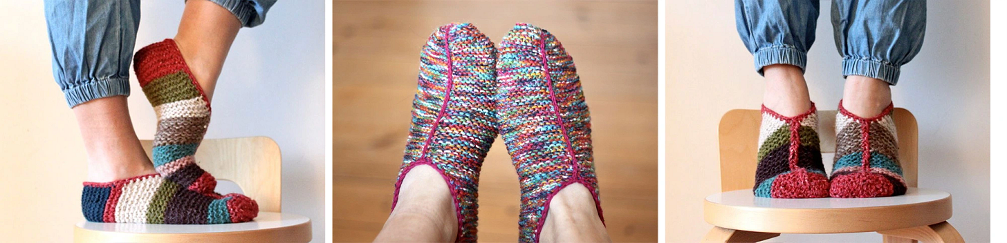 Dip It (pattern & sample photos) © Isabell Kraemer // Simple Garter Stitch Slippers (pattern & sample photos) © Hanna Leväniemi